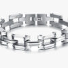 This classic Silver men’s stainless steel bracelet is a modern piece for any day. Bracelet measures 8.5 inches in length features a fold over clasp.