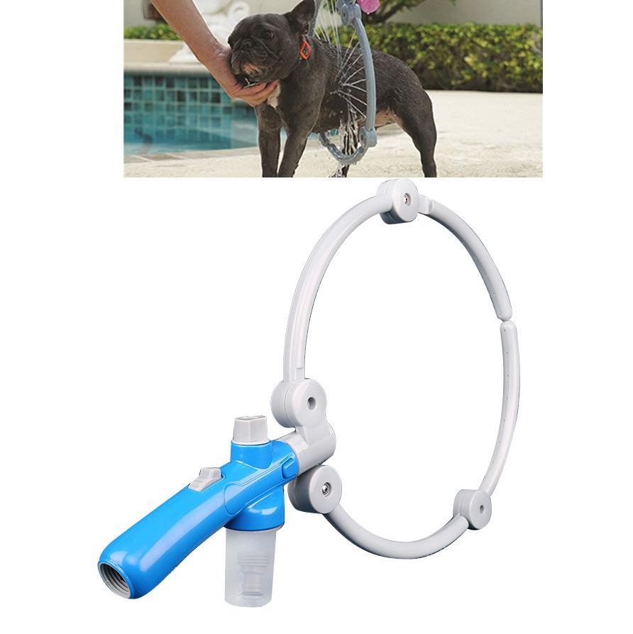 - 360?DESIGN: The 360 woof washer connects to your standard hose to make quick work of washing your dog. Woof washer sprays your dog from all sides simultaneously from 30 water jets. Water sprayed from small holes and it looks like a hula hoop which sprays water. It helps make washing your pet simple and hassle-free.