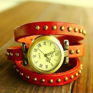 This Hot selling women Bella Chic watches and bracelet is a stunning, trendy and unique design piece. The watch centers on a studded and double-wrapped leather band, which doubles as a bracelet and a wristwatch. Comes in 4 colors (orange, brown, green, red ).