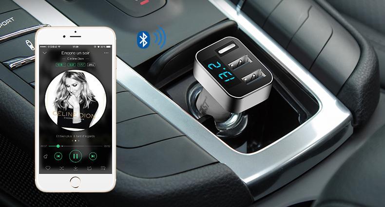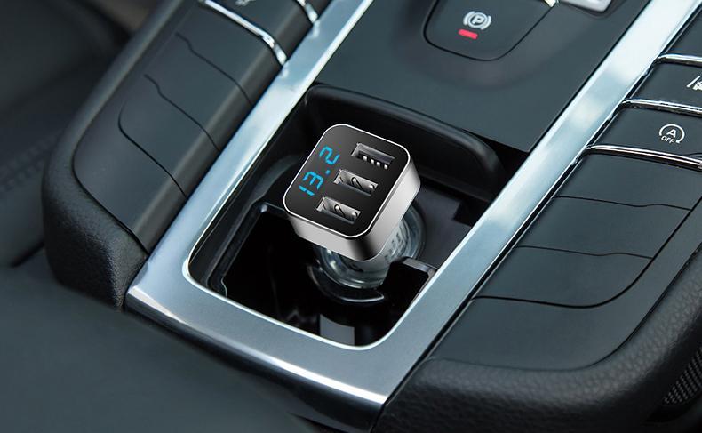 High quality high speed USB Car Charger + Battery Voltage Tester + FM Transmitter.