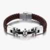 This classic Silver men’s stainless steel bracelet is a modern piece for any day. Bracelet measures 8.5 inches in length features a fold over clasp.