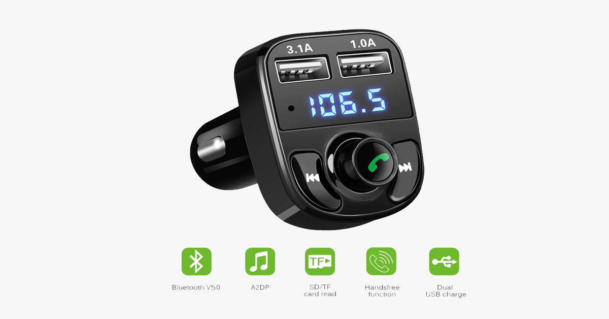 - With FM signal, it can play music from your Bluetooth-enabled devices to the car stereo system.