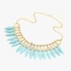 With glamorously heavy beading, these bold statement necklaces are sure to add personality to any outfit.? Available in a range of deep colors, including blue, green, red and black.? This neck piece is sure to turn heads as the perfect accessory for any occasion.??