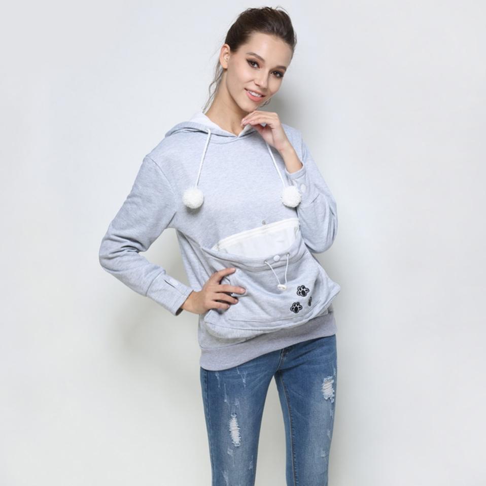 The Cuddly Kangaroo Pet Lover Hoodie is offered in Two Fashionable Colors: Black and Gray