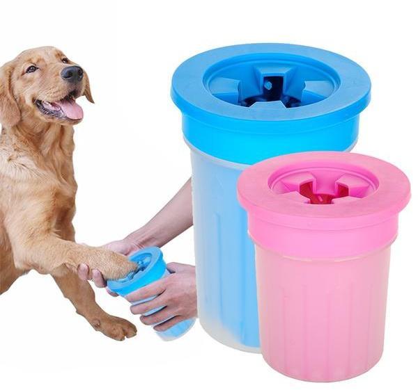 Use this dog paw plunger washer to quickly and easily clean your dog’s paws! Simply fill the device halfway with water with a little bit of soap (optional) and insert your dog’s paw into it repeatedly until clean. The soft plastic bristles will scrub away dirt, sand, rocks, mud, and grime and the dirty water will stay contained in the cylinder. Then simply drain the dirty water and let it air dry. Simple as that!
