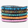Egyptian Turquoise Wrap Bracelet is made from smooth turquoise semi-precious stones around wrapped brown leather.
