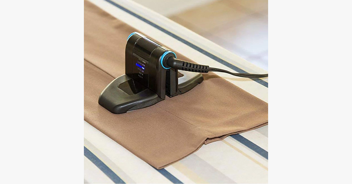 Folding Portable Iron has a flat design that folds about the size of a palm.?By spreading out the sides of the iron, you can use it to iron a wide range of clothing like a traditional iron.?For small areas such as collars, pockets or trouser legs, simply clip the sides of the iron.