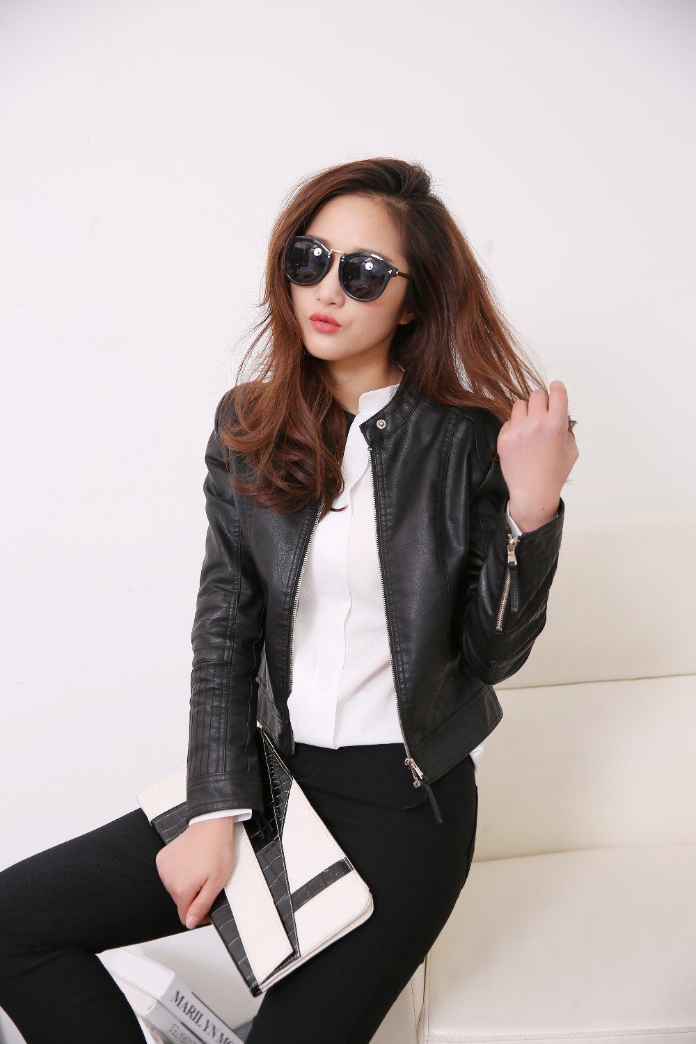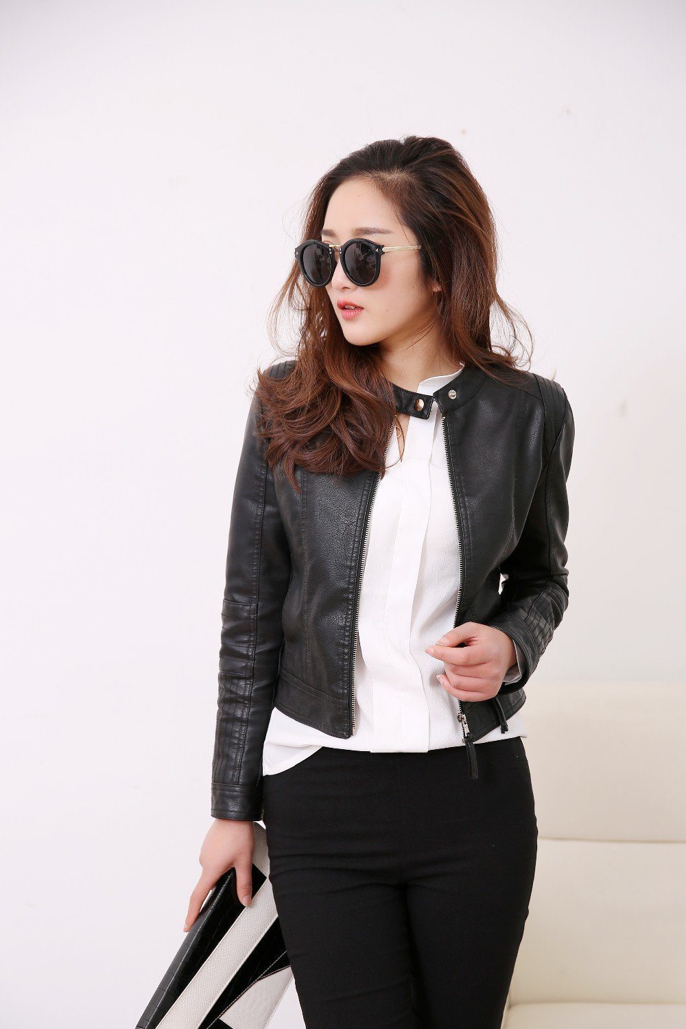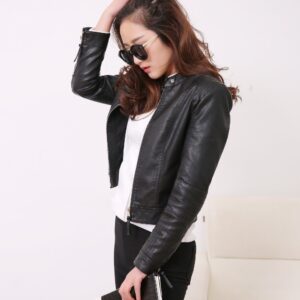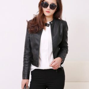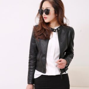 FTLZZ European Style O Neck PU Leather Jacket