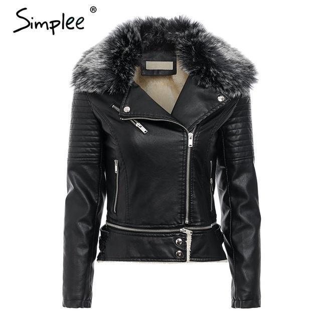 Fur Collar?Leather Jacket Zipper pockets 2018