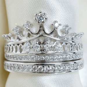 By wearing our imperial crown ring set you can look and feel royalty. The imperial crown ring set is elegant and charming, also has a special feature of making one ring into two styles. The combination ring design lets you get a different style ring, which could be worn together, alone or stacked with other rings. The ring can be divided into 2 rings, one as a crown ring which makes you look royal and the other one as a tiara ring which looks so simple and can be used as daily wear.