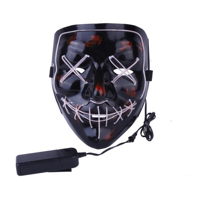 - PREMIUM QUALITY: Glowing EL Wire is woven into the purge mask. It?s made of durable PVC. It has no UV harm, no adverse effects on the human body. Safe for the skin, and environmentally friendly.?