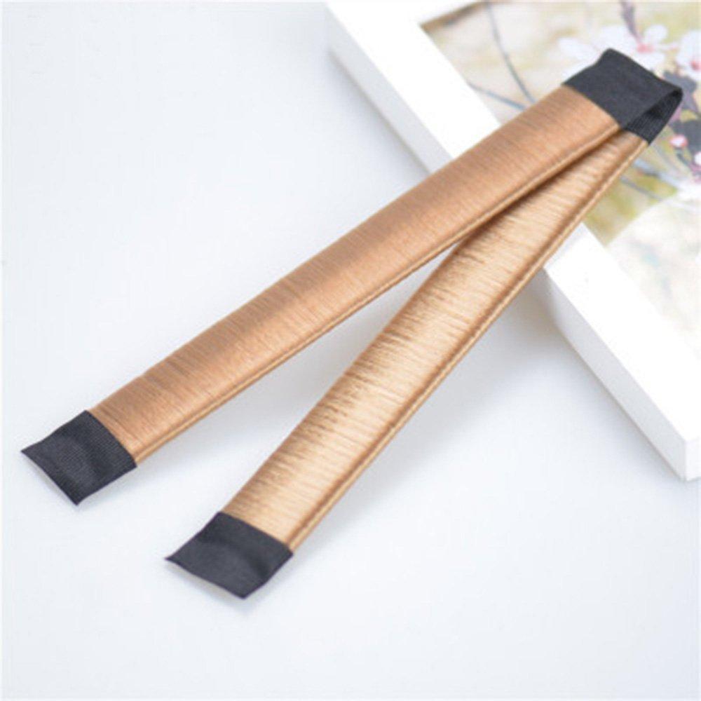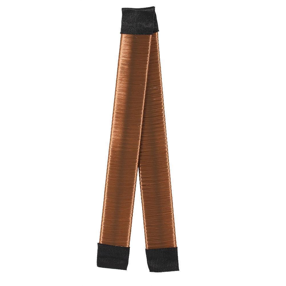 2. Straighten the hair bun tool, and place your hair between the two bands.