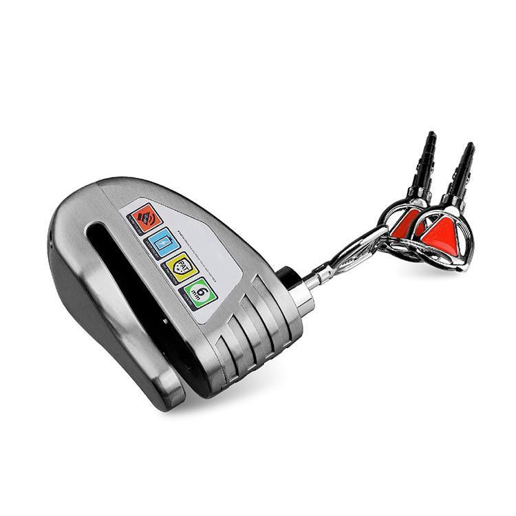 - STURDY CONSTRUCTION: This motorcycle disc lock has a strong and durable heavy duty alloy steel body. High nickel-content stainless-steel monoblock construction and piercing alarm. Waterproof, sawing resistant, shear resistant, rust-resistant, weather-resistant.