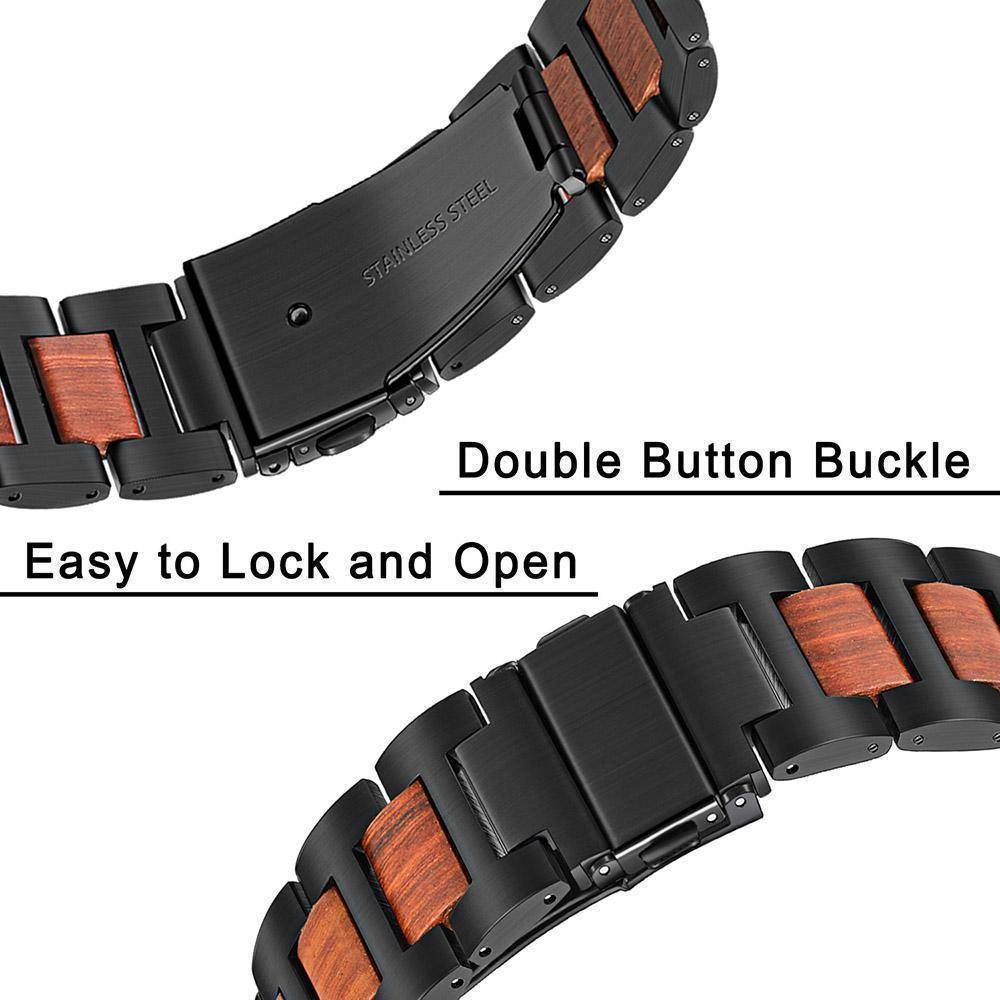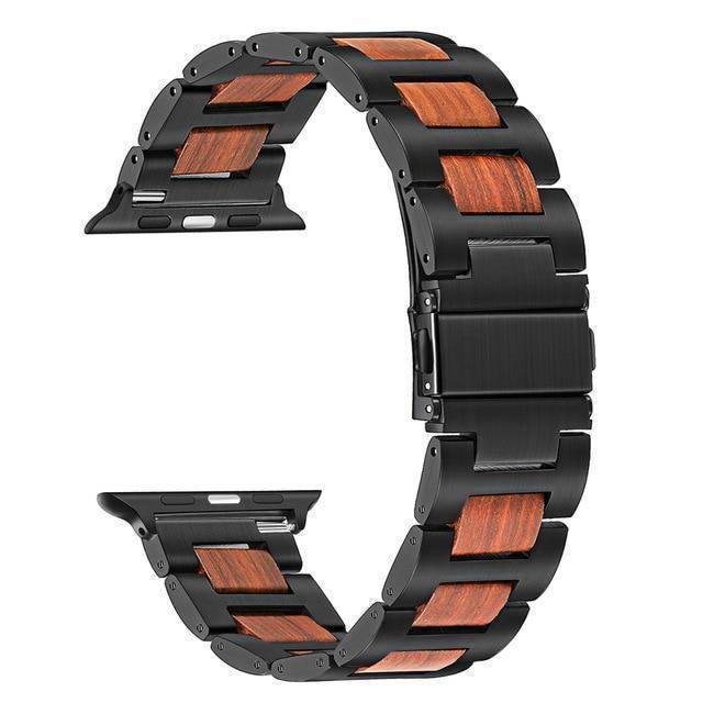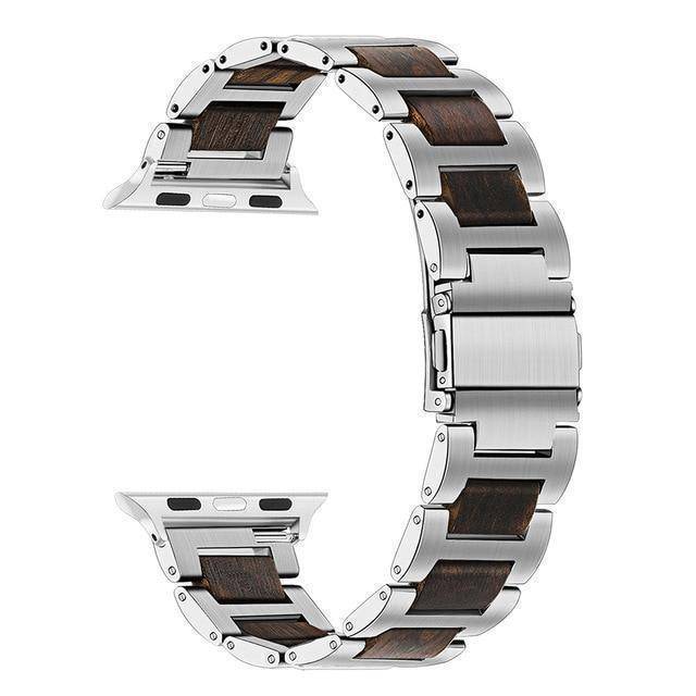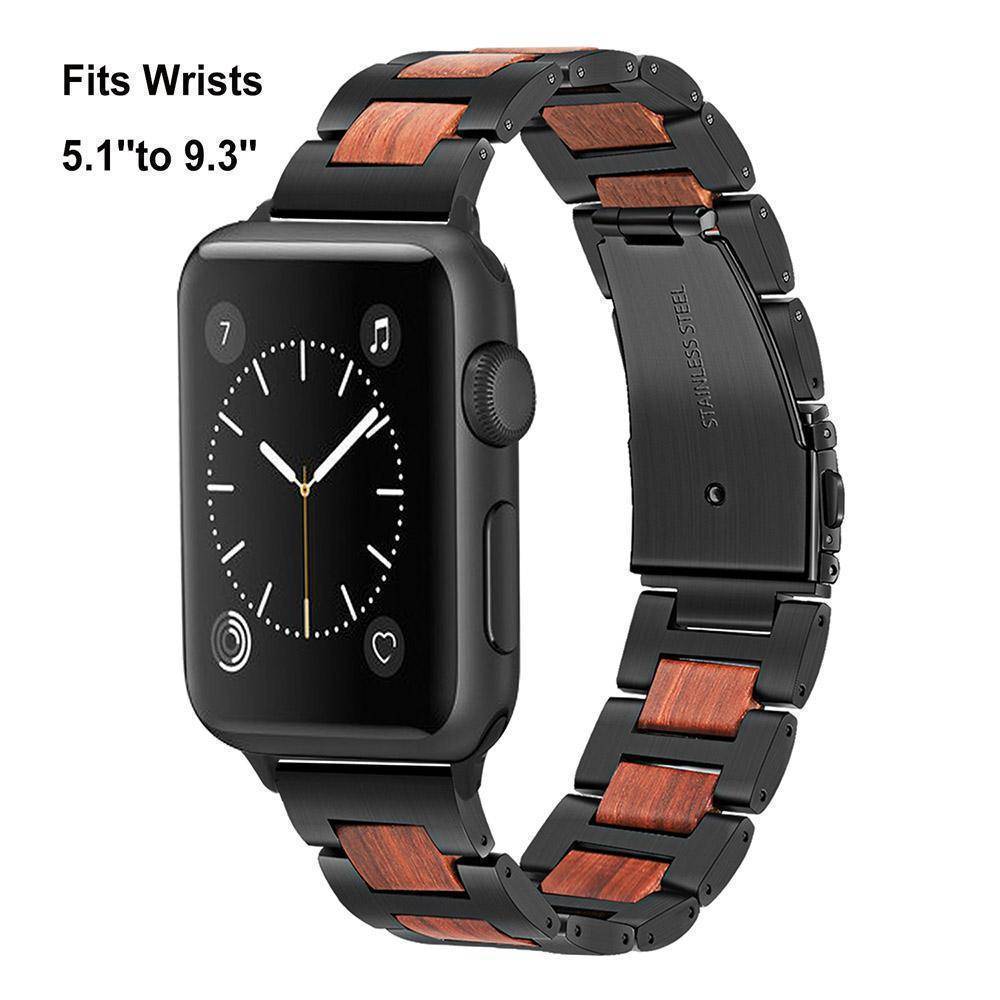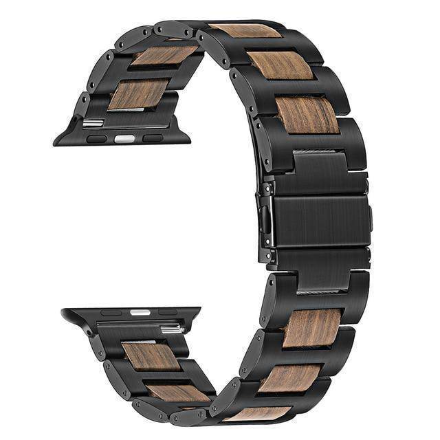 Natural Walnut Wood + Stainless Steel Wooden Watch Band for iWatch Apple Watch 38mm 40mm 42mm 44mm Series 1 2 3 4