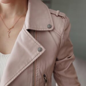 Pink Leather Short Design Faux Leather Motorcycle Outwear