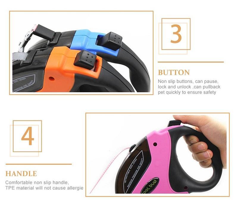 - Walk your dog freely in open area with one hand braking, release and recoiling system, which allows the dog leash to be adjusted to a comfortable length with ease