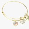 With a precious Rose pendant, this charm bangle is a delicate gift, offering love and affection for every occasion. Detailed with 2 dangling motif charms and two heart pendants. Engraved with the word “Love” on it. Designed with an adjustable diameter to comfortably fit every wrist size.