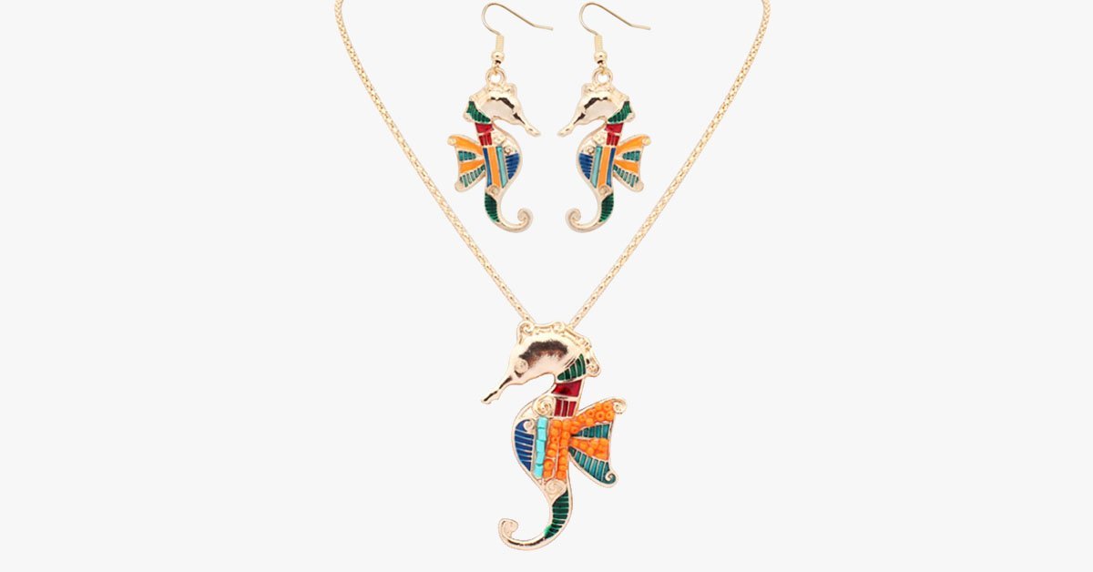This unique Seahorse Hippie Pendant Set are the perfect accessories to express your individuality. Show your creative side with this multi-colored set. This one of a kind necklace and earrings set is a must have and makes a great gift!