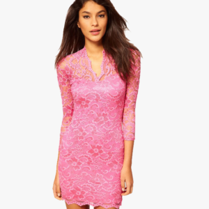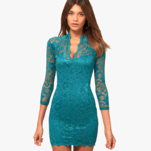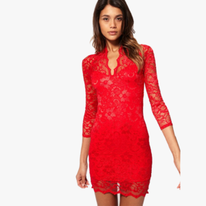 This lovely o-neck style evening dress is crafted from a stretch lace with underlay. Wear it with pumps or stilettos, and add a blazer or a pea coat if the weather gets too crazy!