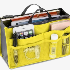 Are you looking for a stylish slim purse? Here we offer you our slim bag-in-bag purse made up of easy-care cotton and polyester. It is specially designed to give you a style that will keep your fashion cool. You can attach this slim bag in your suitcase, below the desk or back of your seat. The bag is designed of multiple slots with zipper closure to keep your accessories like mobile, pens, small notebooks, makeup sets and many more things in an ordered way. This bag is compact and portable, so you can take this along with you wherever you want.