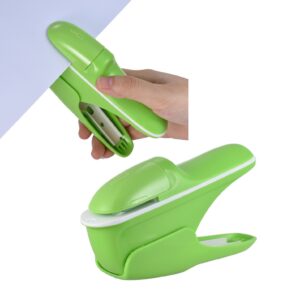 - ECO-FRIENDLY STAPLER: The staple free stapler is made of high-quality and durable plastic material. Paper recycling is easy without worrying about staples getting in the mix. The stapler is safe to use. Even children can use it.