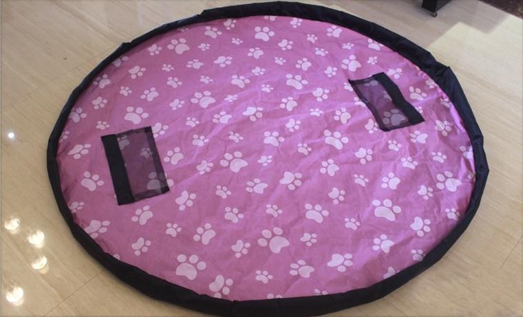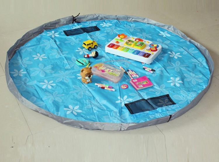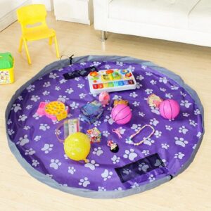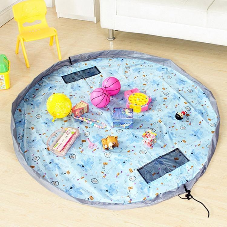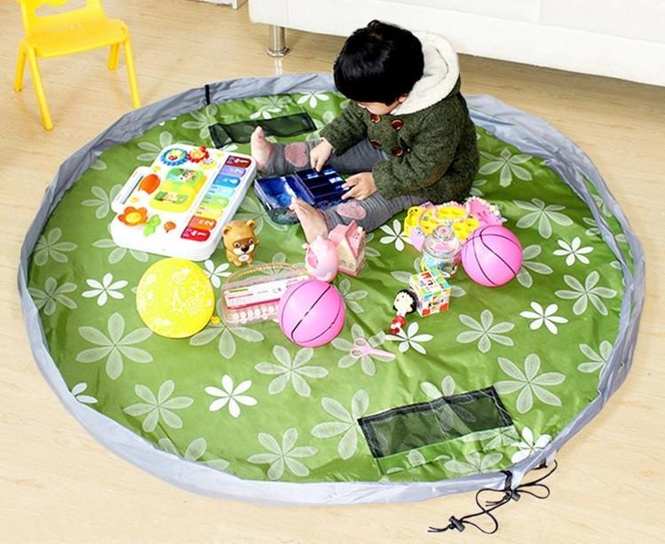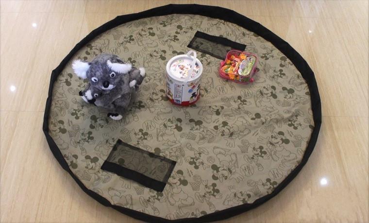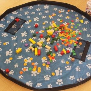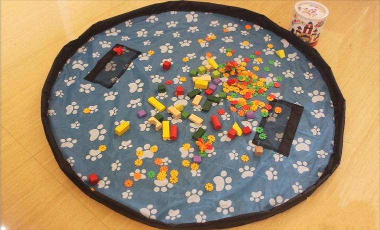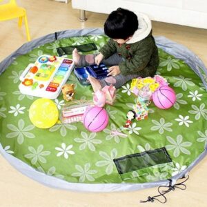 The bag starts as a floor mat that folds out to 150 cm (60″), offering plenty of space for your kids to spread out their toys and play. When play is finished, the storage bag offers tons of room for small and medium sized toys.