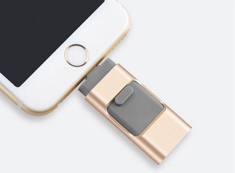 Bring multiple flash drives, cables or connectors in pocket? Want a smart solution to connecting multiple devices? This three-in-one flash drive makes life easier.