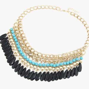 Our Traditional Statement Necklace is a one of a kind design, created to provide tasteful flare for any outfit.? It comes in many colors, including turquoise, green,red and pink.? With its balanced craftsmanship, the Traditional Statement Necklace is sure to bring depth and excitement as the perfect accessory.