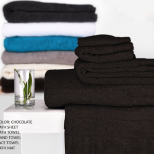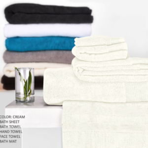 Add a spa-like feel to your bath with the 100% cotton Ultra Soft Bath Towel Set. This plush, luxurious set includes 1 bath sheet, 1 bath towel, 1 hand towel, 1 face towel, and 1 bath mat. Adding a touch of elegance and cohesiveness to your home.