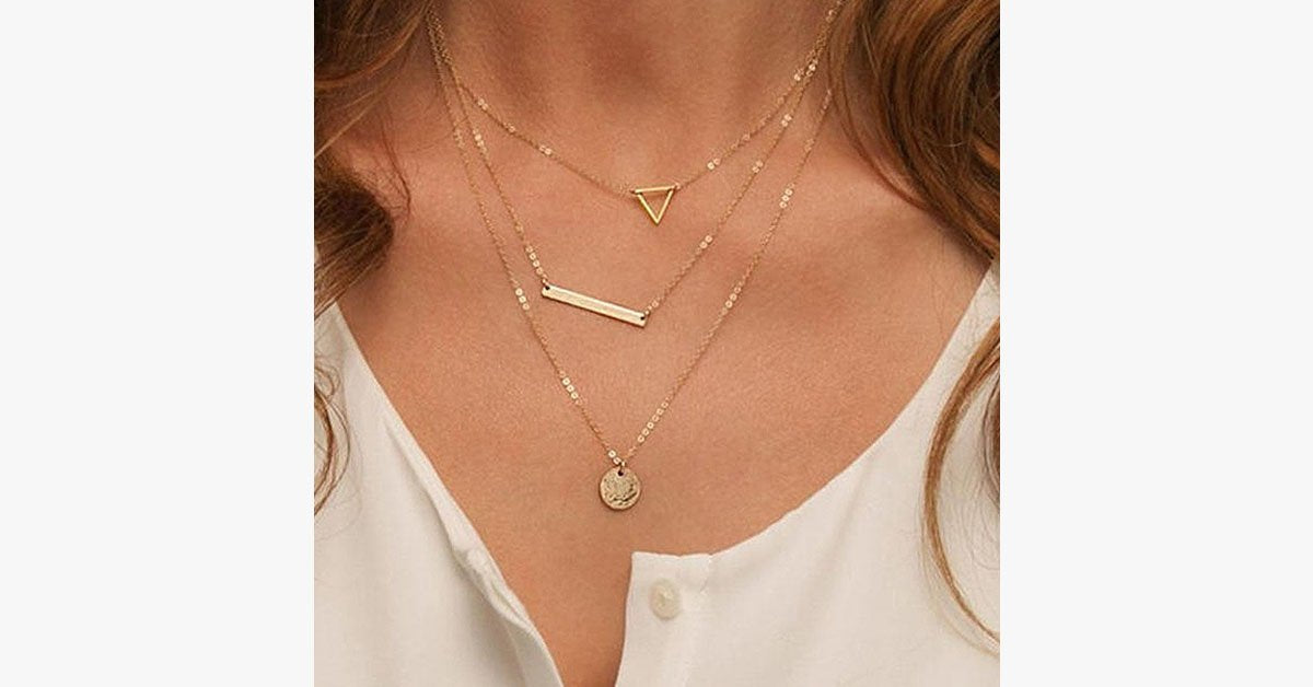 Vintage Hollow out Triangle Layer Necklace