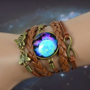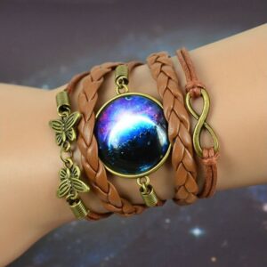 Channel your earthy spirit with this Vintage Inspired Boho Starry Moon Bracelet! If you are a lover of all things beautiful and natural, this unique bracelet is one way to capture that side of yourself! With its glossy center reflecting the galaxy and brassy butterfly and infinity charms to match its tan strap, this wrap-around is one true manifestation of that hippie girl we all have in us!