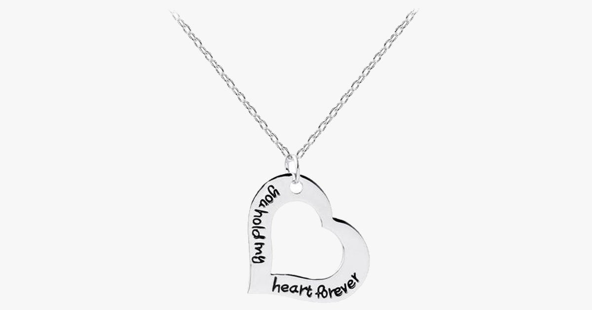 Dazzle your a loved one with this simply elegant customized heart pendant! This beautiful silver-plated pendant holds all the sentiment you’ve been wanting to share with your special someone with its hand-stamped engraving “You hold my heart forever”. Your wearer will want to carry this reminder with her wherever she goes. This precious necklace gives off a shimmer that will have her beaming with her gorgeous accessory!?